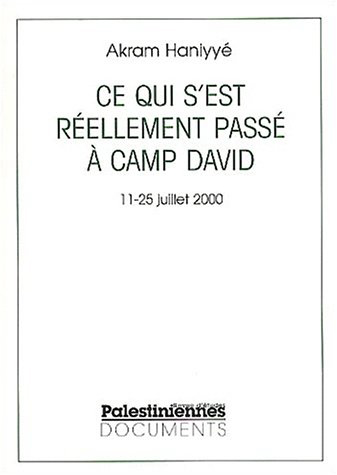 Ce qui s’est réellement passé à Camp David, d’Akram Haniyyé reprend les minutes de l’un des principaux négociateurs palestiniens à ces pourparlers, expose en détails le déroulement des échanges ainsi que les diverses propositions avancées par les parties et décrit l’atmosphère qui a prévalu pendant ces deux semaines de huis clos.