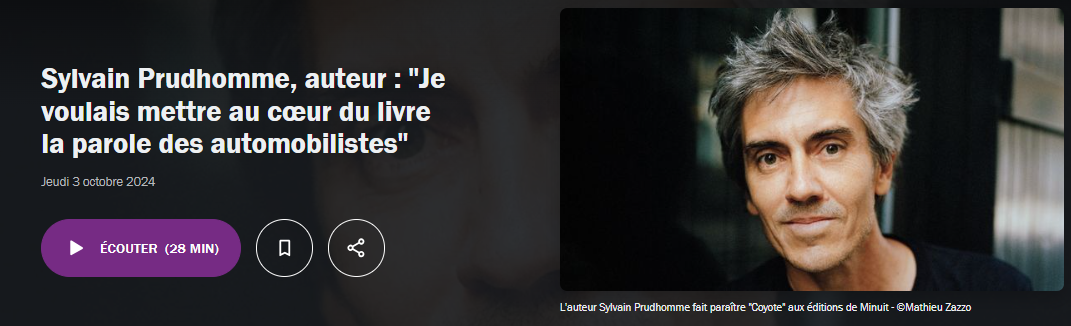 Le jour où Sylvain Prudhomme imagina le personnage d’autostoppeur de son splendide roman Par les routes (2019), savait-il qu’il en garderait une irréversible déformation du pouce, levé pour bon nombre d’années, de kilomètres, de rencontres ? Après la parution du livre, la revue America lui proposa d’aller héler des inconnus au volant de leur voiture le long de la frontière mexicaine, et de tirer un reportage écrit de ces voyages improvisés en Californie, en Arizona, au Texas. L'exercice fut profitable, puisqu’il nourrit aussi le Coyote qui paraît aujourd’hui, récit plein de claquements de portières, de cartons de pizza sur la banquette, de « ça se voit pas que je suis dealer ? Sens-moi cette odeur mec », de halos de torches dans les champs, de serpents à sonnettes, de « je peux pas t’autoriser à prendre une photo de moi. Vis-à-vis de Dieu je peux pas ». Ce dernier acceptera finalement que l'écrivain prenne une photo de lui, mais à la volée. Elle figure dans l’ouvrage, comme celles de tous les automobilistes qui l'ont pris à bord, dont Sylvain Prudhomme célèbre l’art de la conversation dans des retranscriptions au savant déséquilibre. Ses questions ont disparu, ses renvois de balle aussi, seuls subsistent les propos en rafales dégainés par les conducteurs (et quelques conductrices), prisonniers d’une bougeotte sur bitume inexorable et sans issue.