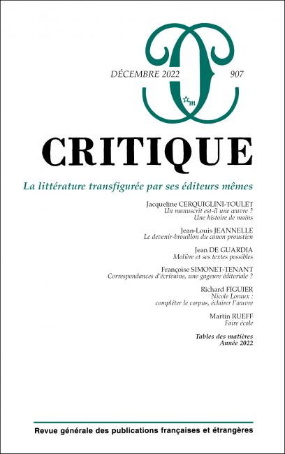 - Critique n° 907 : la littérature transfigurée par ses éditeurs mêmes, 2023
