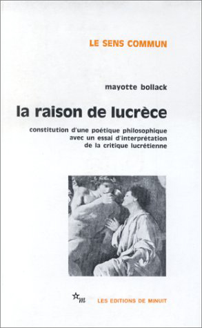 Après un Lucrèce singulièrement dépourvu de références - celui de Michel Serres (Éditions de Minuit) – en voici un qui n'est, au contraire, que références : celui de Mayotte Bollack. À la limite, on pourrait croire qu"il ne s’agit pas du même Lucrèce ; en tout cas, il n’est plus question, ici, de fleuves et de turbulences, mais avant tout de problèmes philologiques. L’appareil critique semble dévorer le texte. Pourquoi ? Parce que, dans l’optique de chercheurs comme Jean ou Mayotte Bollack, Heinz Wissmann, André Laks et leurs collègues de l’université de Lille III, qui travaillent depuis plusieurs années sur l’épicurisme antique, le texte de Lucrèce est actuellement illisible ; non seulement en raison de ses difficultés internes, mais surtout à cause des manipulations dont il a fait l’objet au cours des temps.